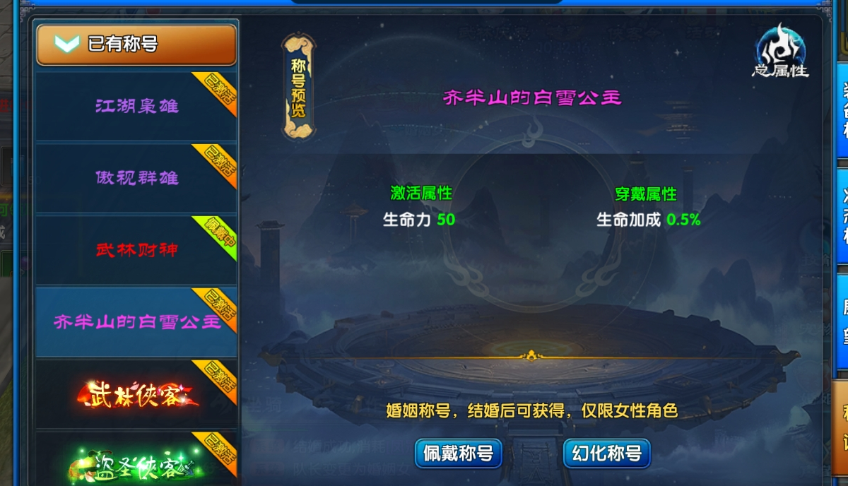 此时新人将获得称号(xxx的白马王子)、(xxx的白雪公主),印下了专属于对方的记号。